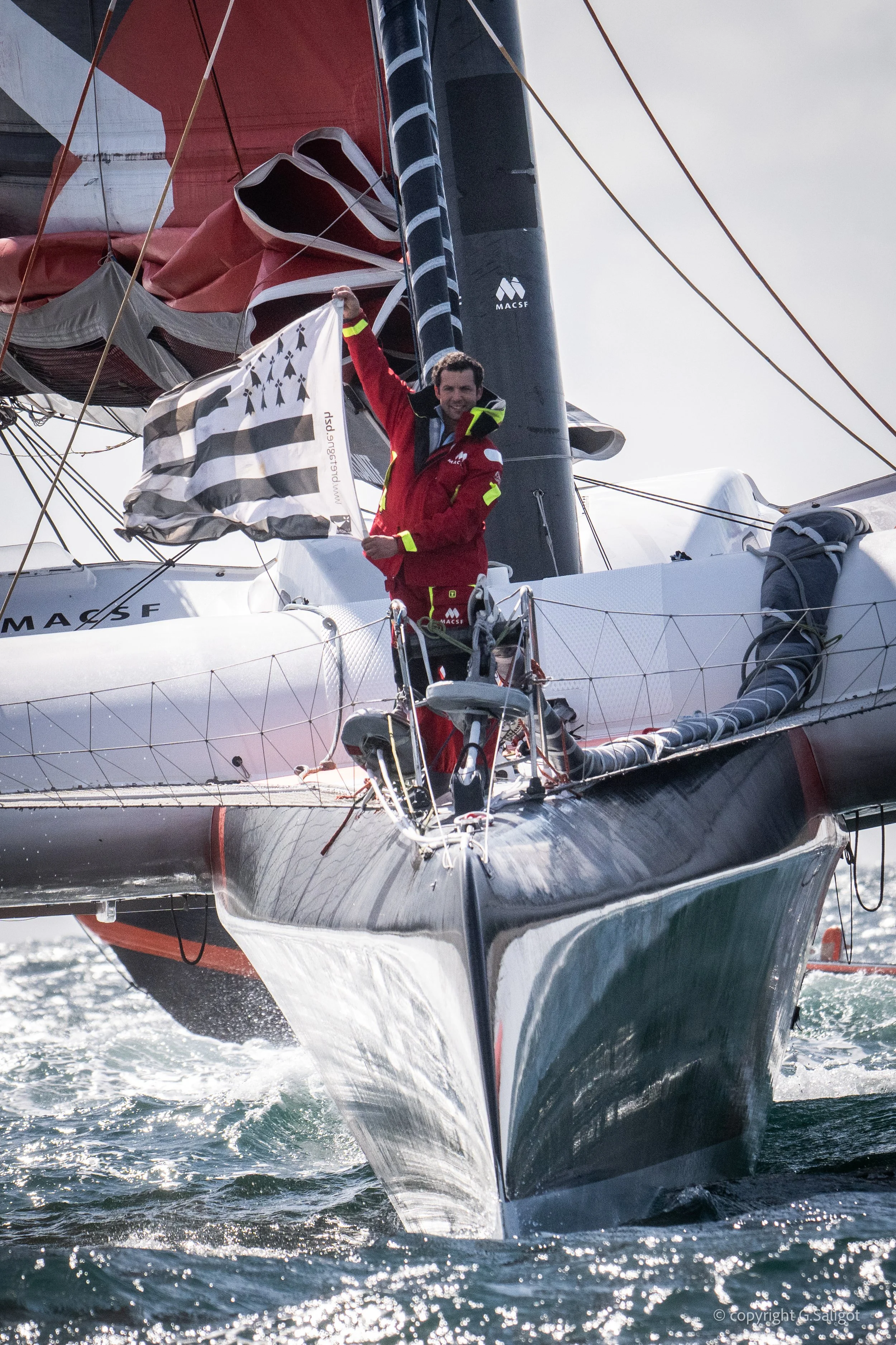 L’Ultim MACSF, long de 31m et large de 21, effectuera sa manoeuvre aux alentours de 9h sur les pontons du port de Tréguier, après quoi Guirec montera sur la terre ferme pour échanger avec le public présent.